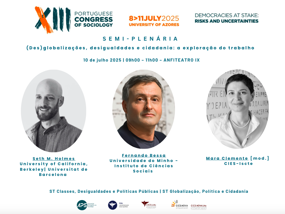 July 10, 2025: “(Un)globalizations, inequalities and citizenship: the exploitation of labor” presentation at the Portuguese Congress of Sociology “Challenging Democracies: Risks and Uncertainties,” University of Azores, Portugal